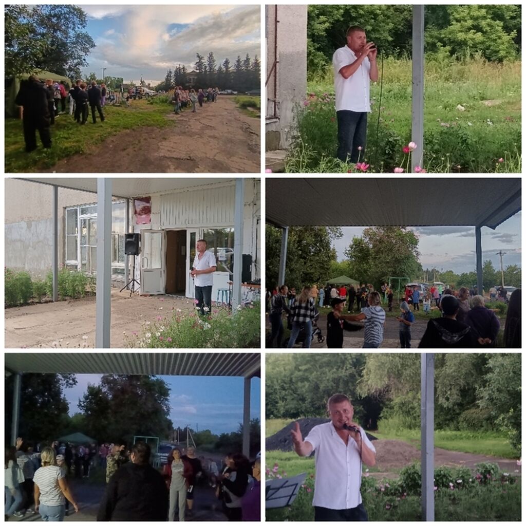 Этот день мы приурочили к Дню семьи, любви и верности. Ведь что может сплачать наши семьи как не семейный отдых. С самого утра день был очень насыщенным и плодотворным. Для детей нашего села мы пригласили развлекательную компанию с большим надувным батутом и каруселью, а в вечернее время для взрослых организовали концертную программу в исполнении Алексея Максимова. По просьбе сотрудников Алексей подобрал песни, которые поются про любовь и семью. Концертная программа проходила на крыльце дома культуры, а не подоплёку была развернута торговая точка в которой участники мероприятия могли приобрести шашлык, шаурму и горячий кофе из кофе машины. В этот день только хорошее настроение царило над нашей деревней.