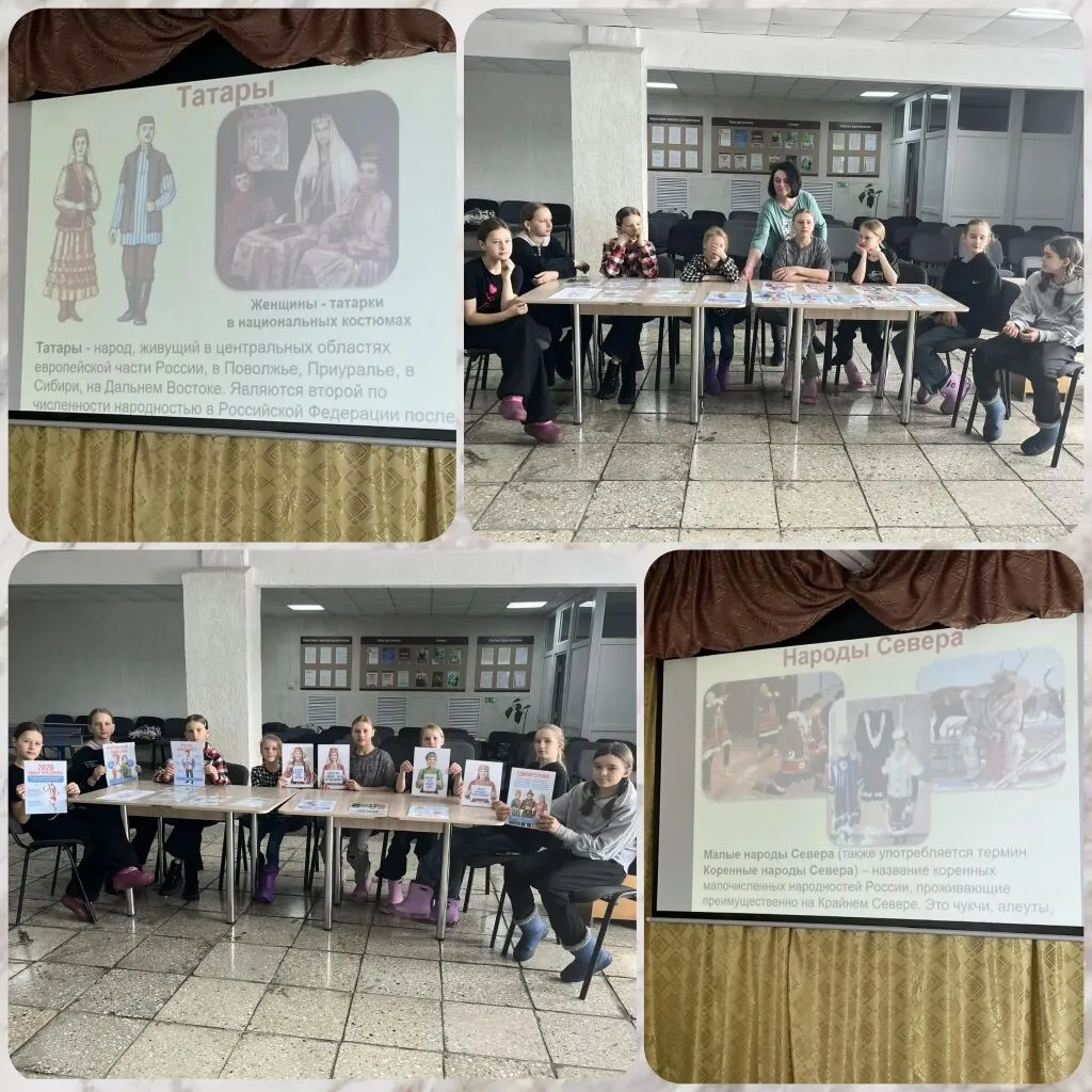 Мы — семья народов России! 29 марта в Ельцовском сельском культурно-досуговом центре для участников клубного формирования «Серпантин» прошёл познавательный час " Мы семья народов России " . Ребятам была представлена слайдовая презентация, посвящённая многонациональной культуре нашей страны. Участники узнали, что на территории Российской Федерации, согласно данным переписи населения, проживает свыше 190 национальностей! У каждого народа — свой уникальный костюм, традиции, обычаи и ремёсла. Дети с интересом смотрели презентацию, слушали рассказ и задавали вопросы. Особое внимание уделили раздаточному материалу, где были изображены национальные костюмы и быт разных народов. Главный вывод, который сделали ребята: «Мы разные — в этом наше богатство, мы вместе — в этом наша сила!» Чтобы сохранить это многообразие и единство, важно не только гордиться своей национальностью, но и уважать культуру других народов. Изучая традиции соседей, мы обогащаем свой собственный внутренний мир. Когда мы едины — мы непобедимы! Дружба народов — это сила России.