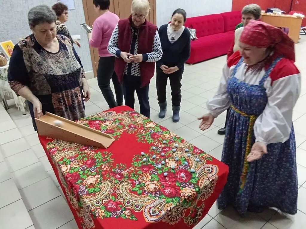 Присутствующие познакомились с историей праздника, вспомнили обычаи, традиции и поверья светлой Пасхи, играли в народные игры и участвовали в гаданиях , что создало тёплую и живую атмосферу встречи.