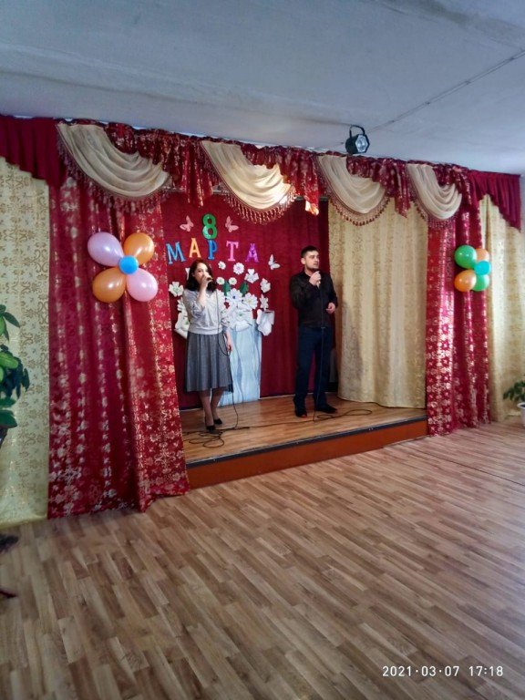 представительницы нашего села. В этот день артисты нашего СКДЦ и гости из г.Барнаула представили концертную программу , посвященную Международному женскому дню под названием «Первое дыхание весны». В программе преобладали творческие номера мужчин: солиста нашей группы Сокол С.П. и гостя из краевого центра Горячева Евгения. Конечно же мужчины пели о любви, а о чем еще они могли петь в этот день. Женская часть зрительниц с удовольствием принимала поздравления в свой адрес и благодарила артистов дружными аплодисментами. В зале расцветали улыбки на лицах женщин, их глаза сверкали ярче, и значит они почувствовали это прекрасное – ПЕРВОЕ ДЫХАНИЕ ВЕСНЫ!